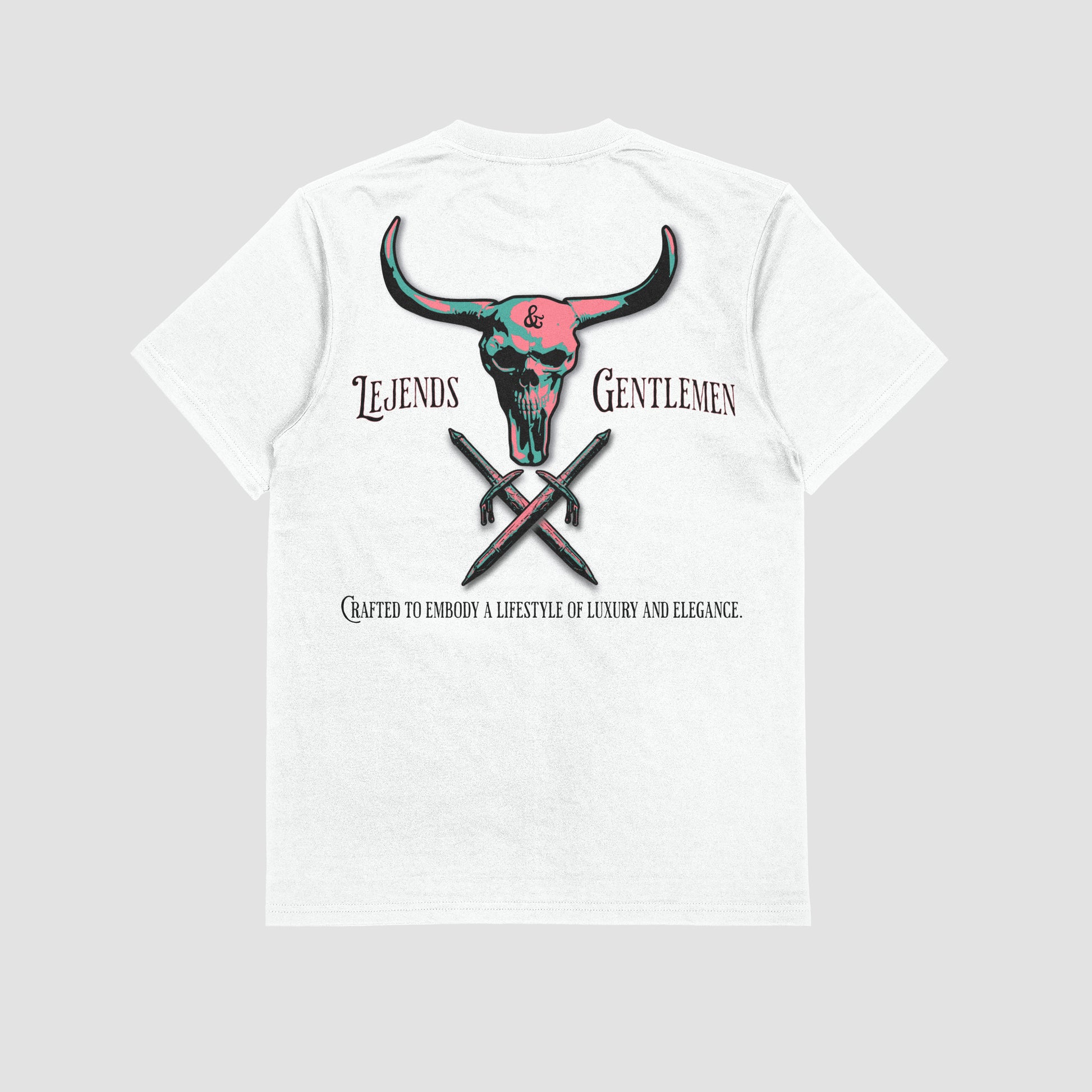 This 100% cotton tee features the brand’s logo prominently on the front and a striking Bull Skeleton graphic on the back. Designed with a relaxed fit and a vintage washed finish, it offers both comfort and timeless style.
